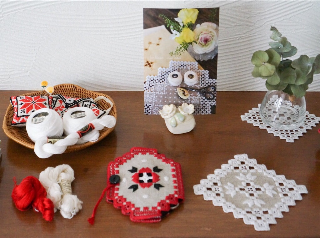 アンティークサンプラーやフォークロアなクロス・ステッチから繊細なハーダンガー刺しゅうまで、長年の豊かなご経験と多方面の造詣の深さを感じる作品づくりが魅力です。