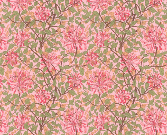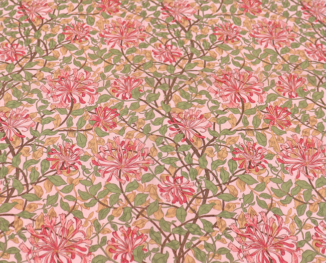 ウィリアム・モリスの代表的なデザイン「ハニーサックル」柄のコットン100%生地です。ハニーサックルとはつる科植物のスイカズラのことです。