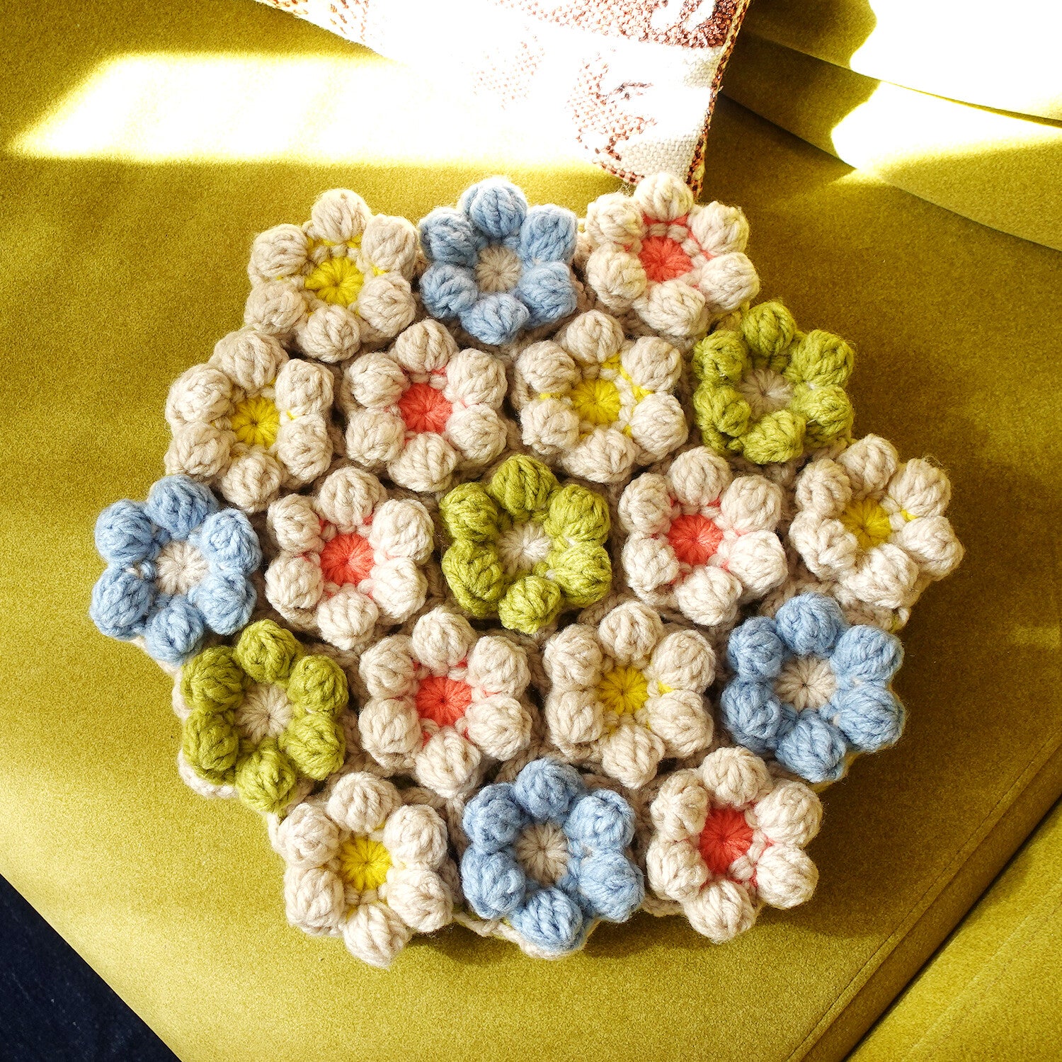 • お花のまち針:日本製シルクピンとチェコガラスビーズで当店にてハンドメイド。目数を数える際に役立ちます。ガラスなのでアイロンにも強い。