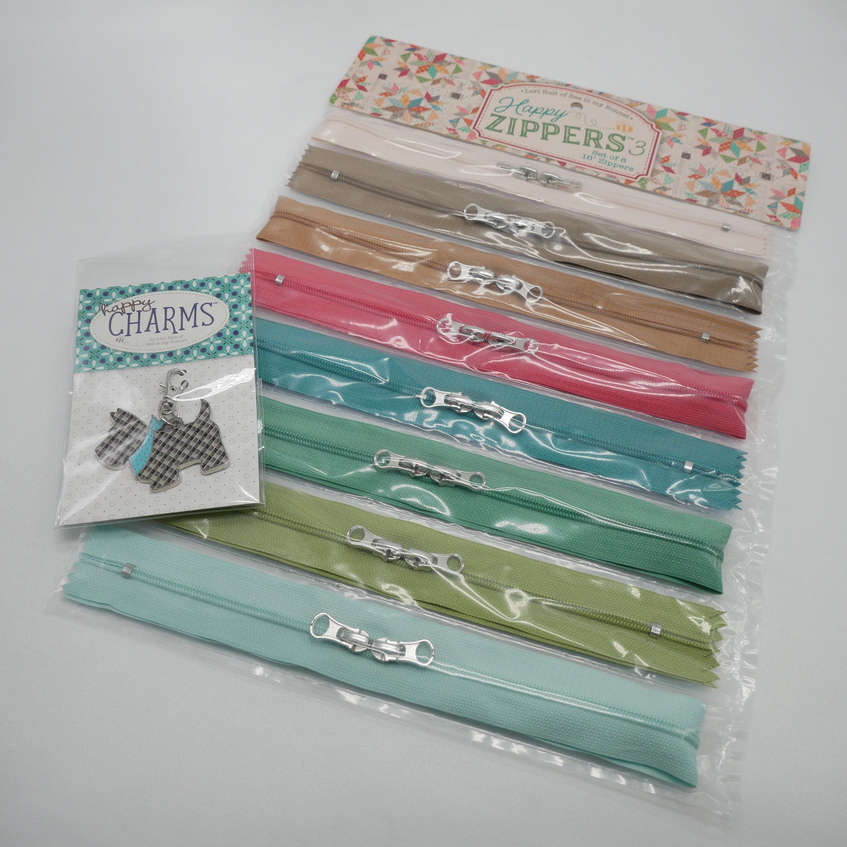 新作Lori Holtプロジェクトバッグを作成できるプリント・パネル生地 Zippy Bags 4。1パネルで大小4つずつのバッグを作れる生地を、当店で大小1つずつ作成できるキットにしました。大小バッグ生地、タグ生地、指定ジッパー、裏布、キルト芯、ジッパーチャーム(柄はお任せください) 付き。お得な割引価格でご提供。