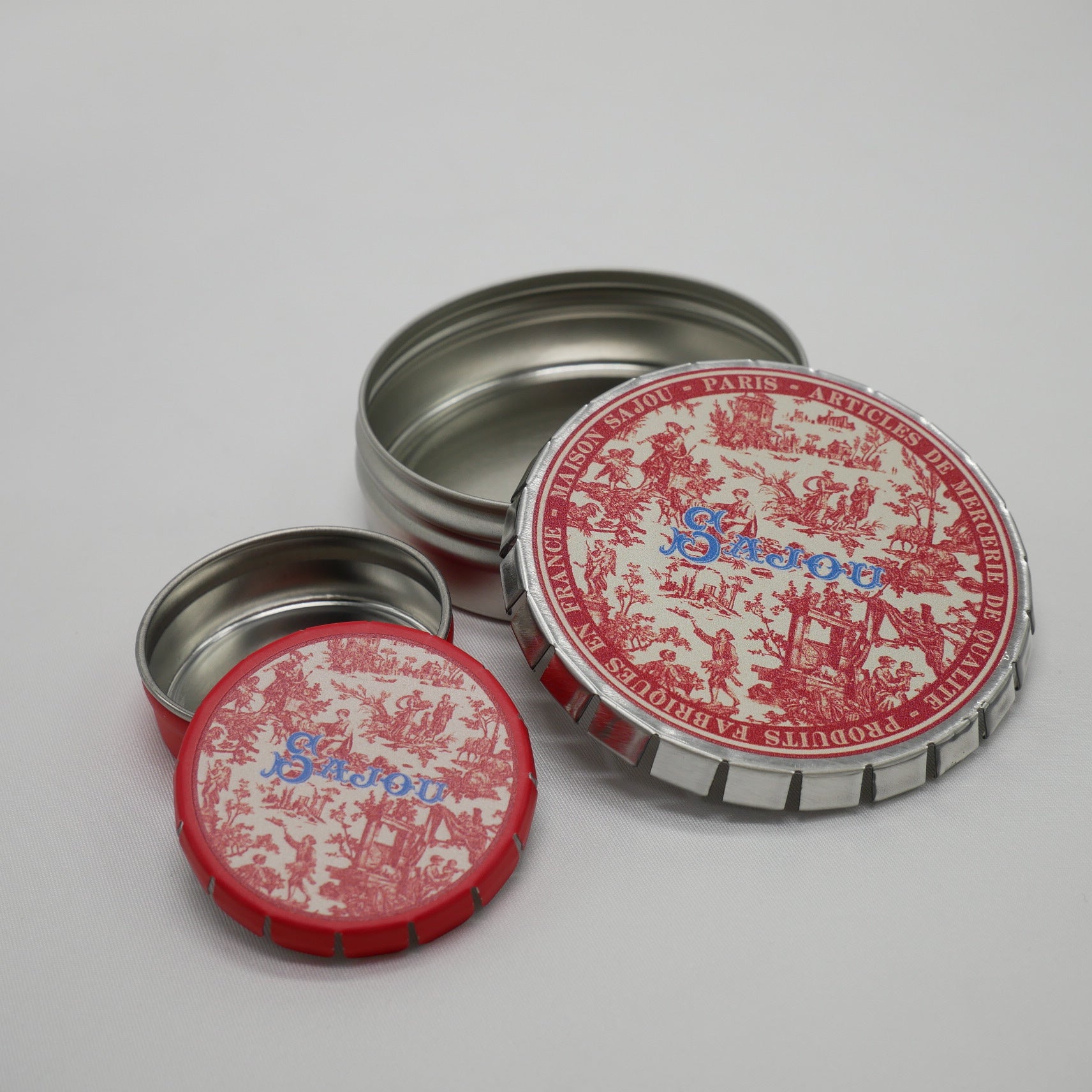 上記の商品画像7枚目、Sajouクリック・クラック缶セットをお届けします。手芸の小物を整理するのに便利です。